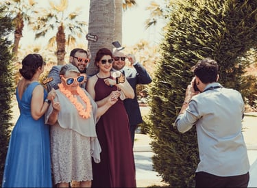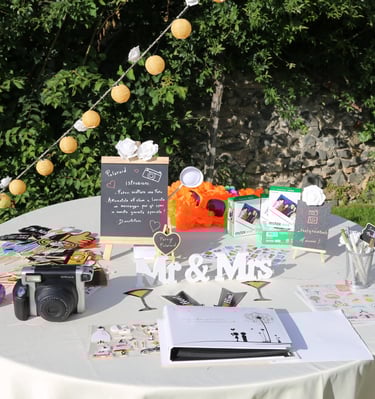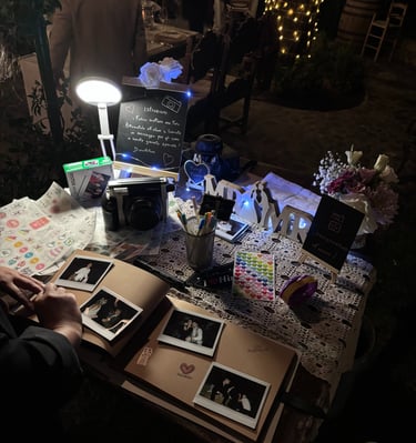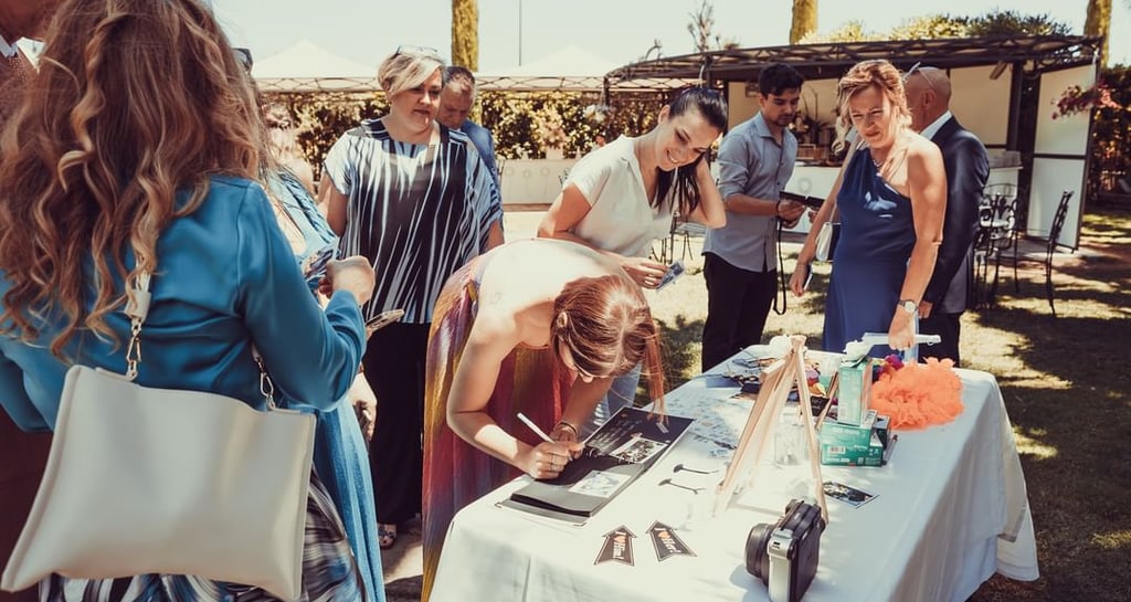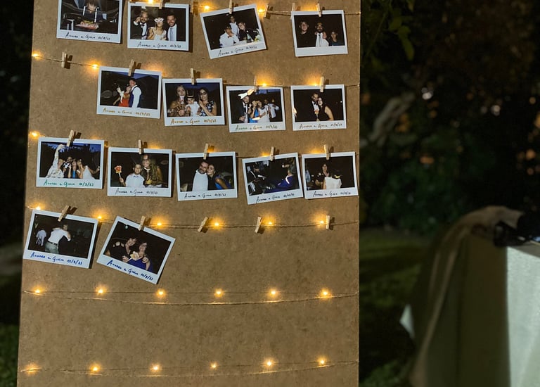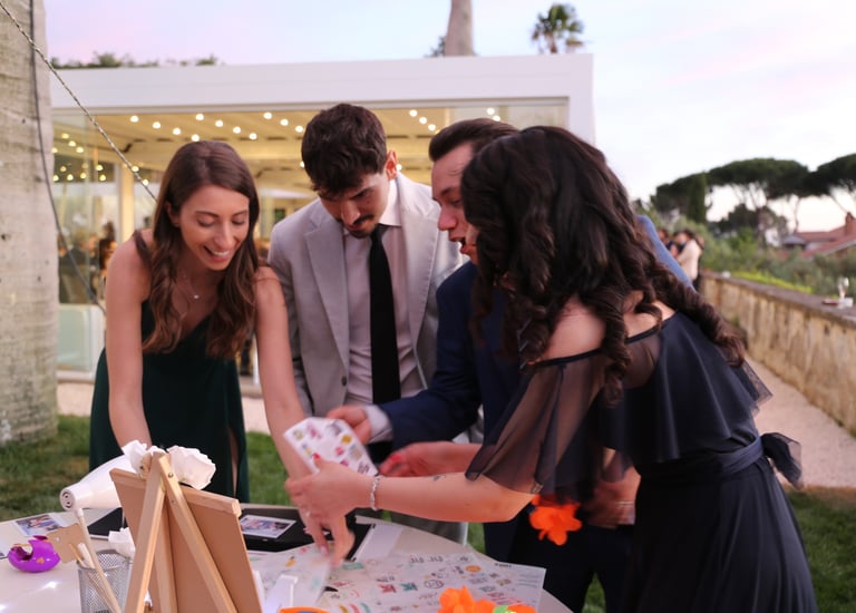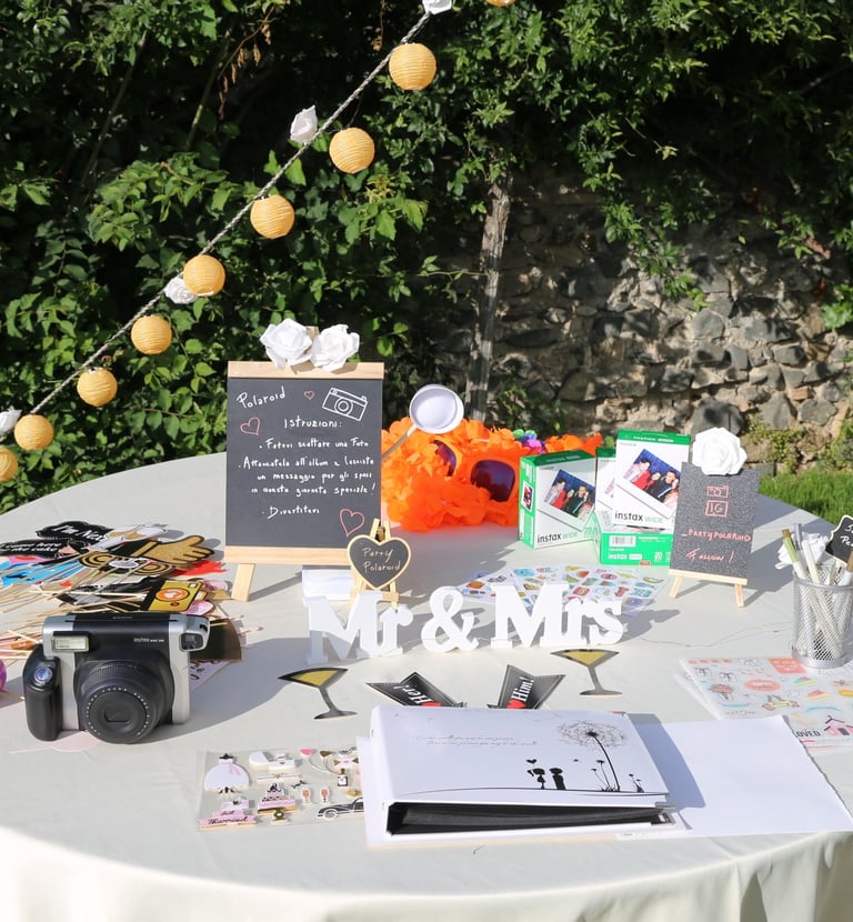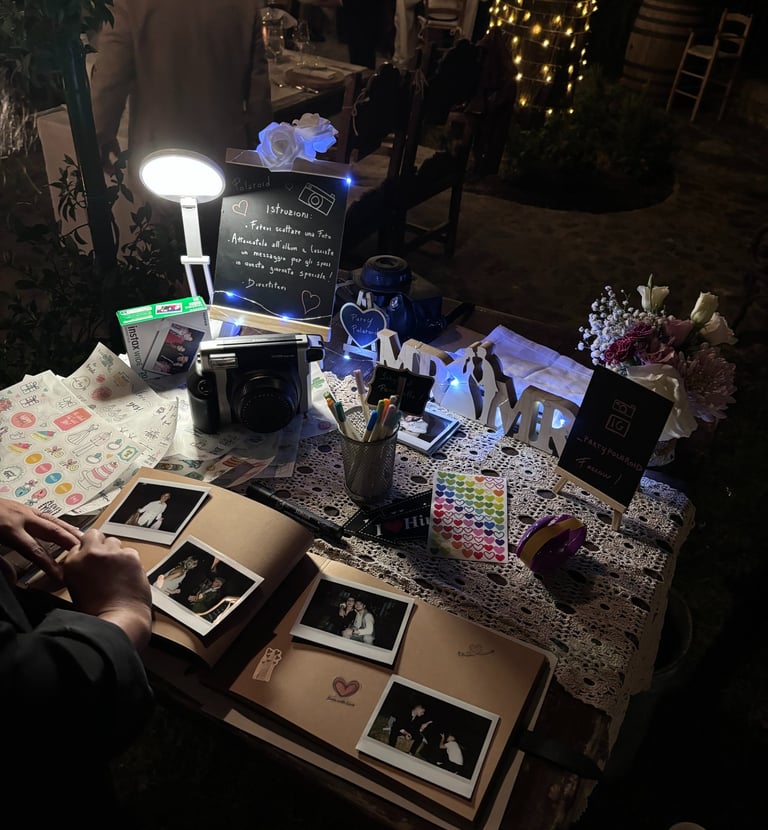 Un bellissimo servizio che dà la possibilità di avere nell'immediato un ricordo del matrimonio, sia per gli sposi, che porteranno con sé subito un album super carino con tante foto della serata corredato di sticker e dediche, e sia per gli invitati che porteranno con sé una foto polaroid scattata con i vari gadget messi a disposizione per lo scatto ( parrucche, occhiali, ghirlande di fiori, baffi ecc ecc).
